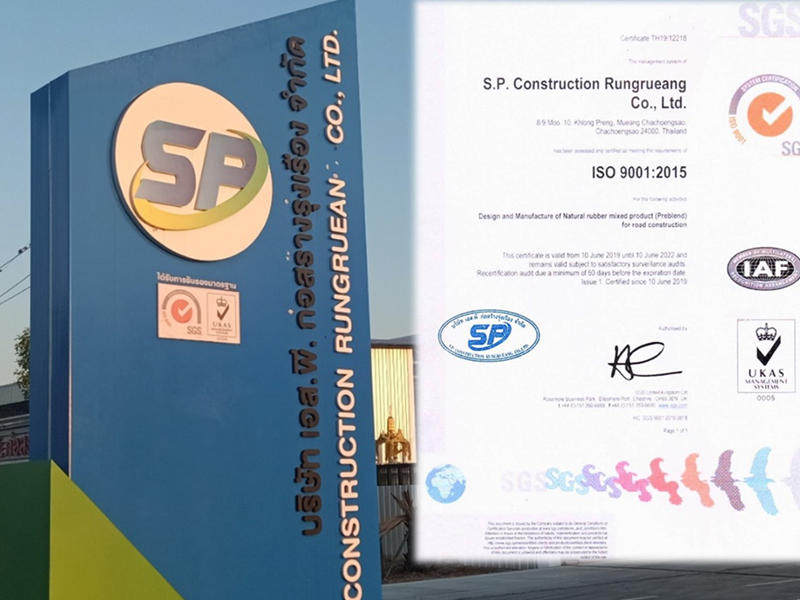 บริษัท เอส.พี.ก่อสร้างรุ่งเรือง จำกัด เป็นผู้ประกอบการในการผลิตและจำหน่ายน้ำยางพาราผสมสารผสมเพิ่ม NR – Preblend ภายใต้ชื่อ SP Preblend สำหรับงานก่อสร้างถนนดินซีเมนต์ปรับปรุงคุณภาพด้วยยางพาราธรรมชาติ (Natural Rubber Modified Soil Cement) ผ่านการรับรองมาตรฐาน ISO 9001:2015 และ ISO 14001:2015